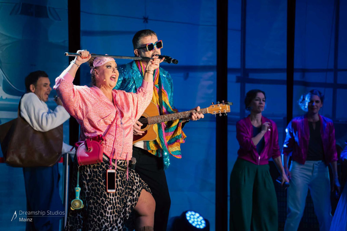 Mit Humor und Tiefgang wird das Publikum durch die turbulente Welt des Reisens und die Höhen und Tiefen der Liebe geführt. Der Flughafen verwandelt sich dabei in eine Bühne voller Gefühl und Glitzer. Mal laut, mal leise werden Geschichten von Sehnsucht, Lebensfreude, Träumen und Neuanfängen erzählt. Zwischen Herzklopfen, Selbstfindung und Dancefloor bietet dieses Stück alles, was das Publikum zum Fliegen bringt.